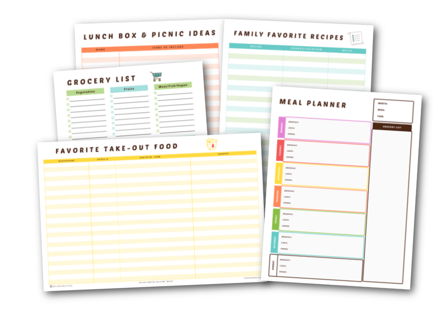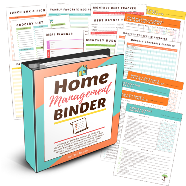 The printable resources included in the Home Management Binger are designed to help you organize everything under the roof. It contains cleaning schedules, meal planning printables, personal and household finance tracking logs, and more!
