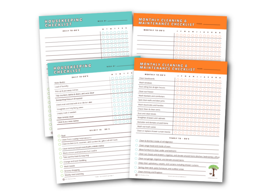 The Home Management Binder includes daily, weekly, monthly, and yearly household cleaning and maintenance checklists to help you keep the house clean and everything maintained. It also provides chore lists, with some copies intentionally left blank so you can easily add housekeeping tasks specific to your home.
