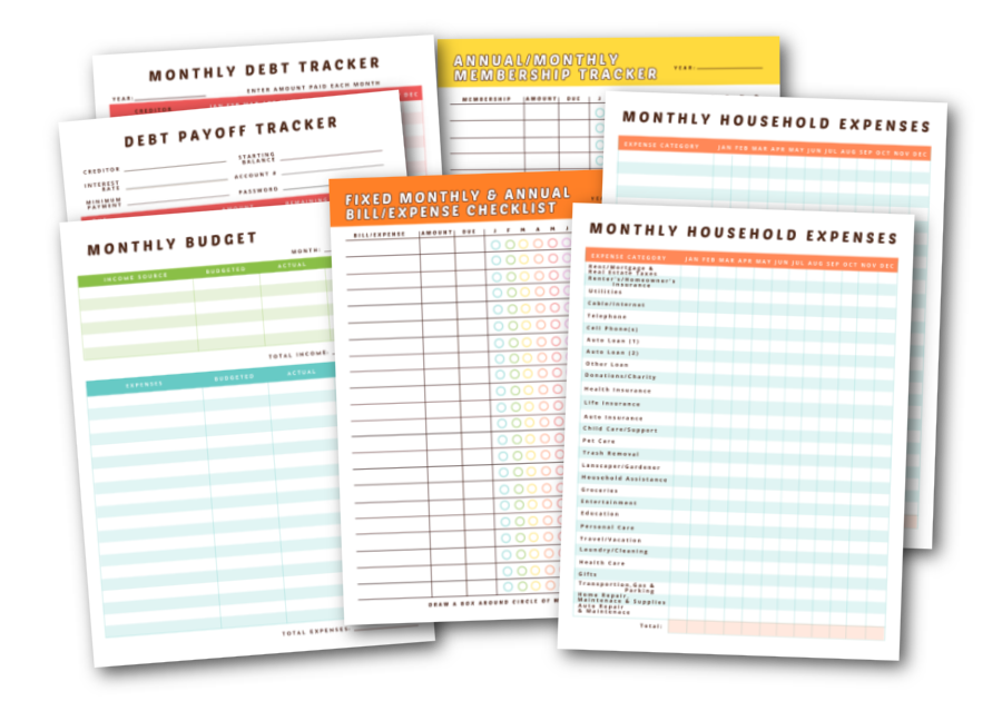 The handy printable tools included in this digital resource make managing finances easy. Use this fantastic collection of personal and home finance trackers to get out of debt and manage the household budget like a pro!