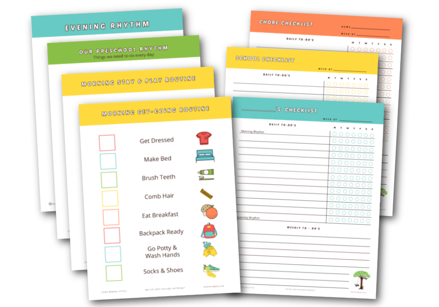 Home & School Tools for Kids includes visual routine charts and checklists that give children of all ages the tools they need to develop independence whether they homeschool or go to school. This comprehensive resource also has a printable preschool daily rhythm chart perfect for homeschoolers!