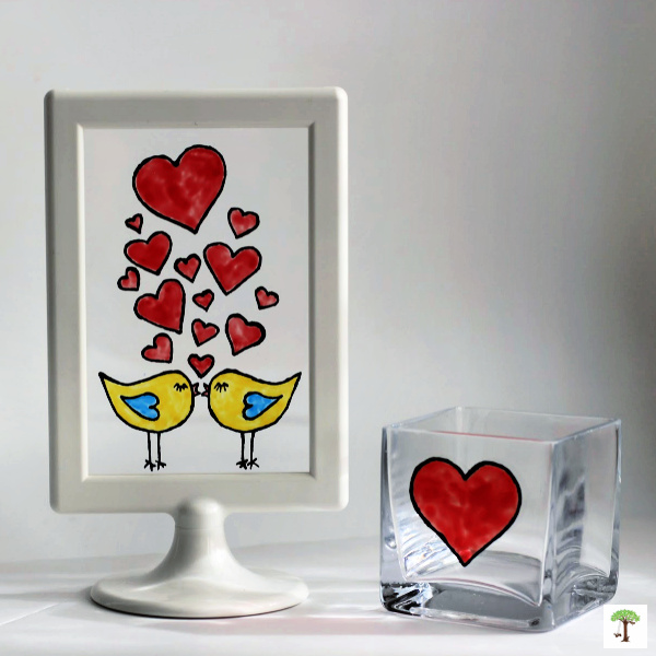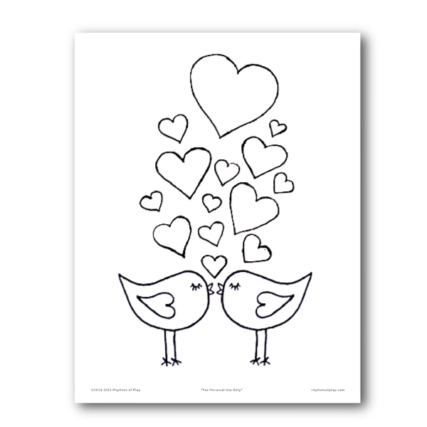 First, click the button below to get access to the "Kissing Lovebirds Art Template." Next, visit Rhythms of Play for the materials list and step-by-step instructions to learn how to make this faux stained glass kissing lovebird craft and gift idea!