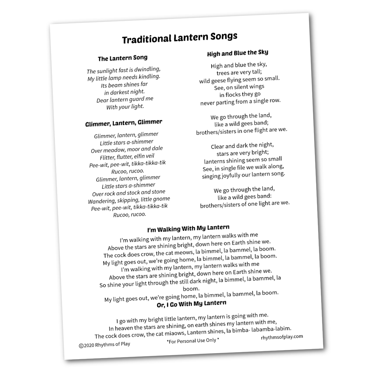 First, print the lyrics to these traditional lantern walk songs, then visit Rhythms of Play to learn how to celebrate Martinmas with a fall lantern walk in your home, school, or community.