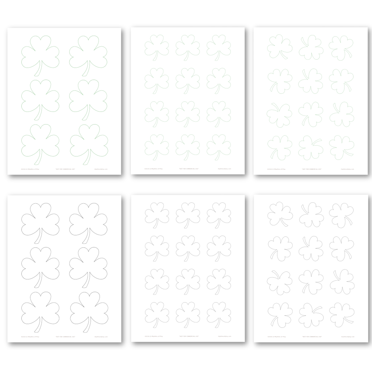 As you can see in the photographs above and below, this Shamrock art and craft set includes shamrock templates in large, small, and medium sizes and color outlines in green or black, making it easy to create shamrock arts and crafts of all kinds.