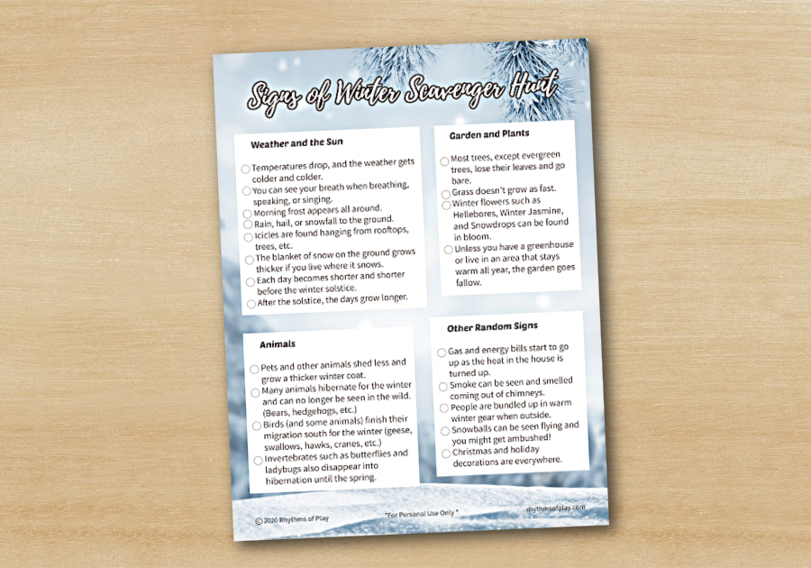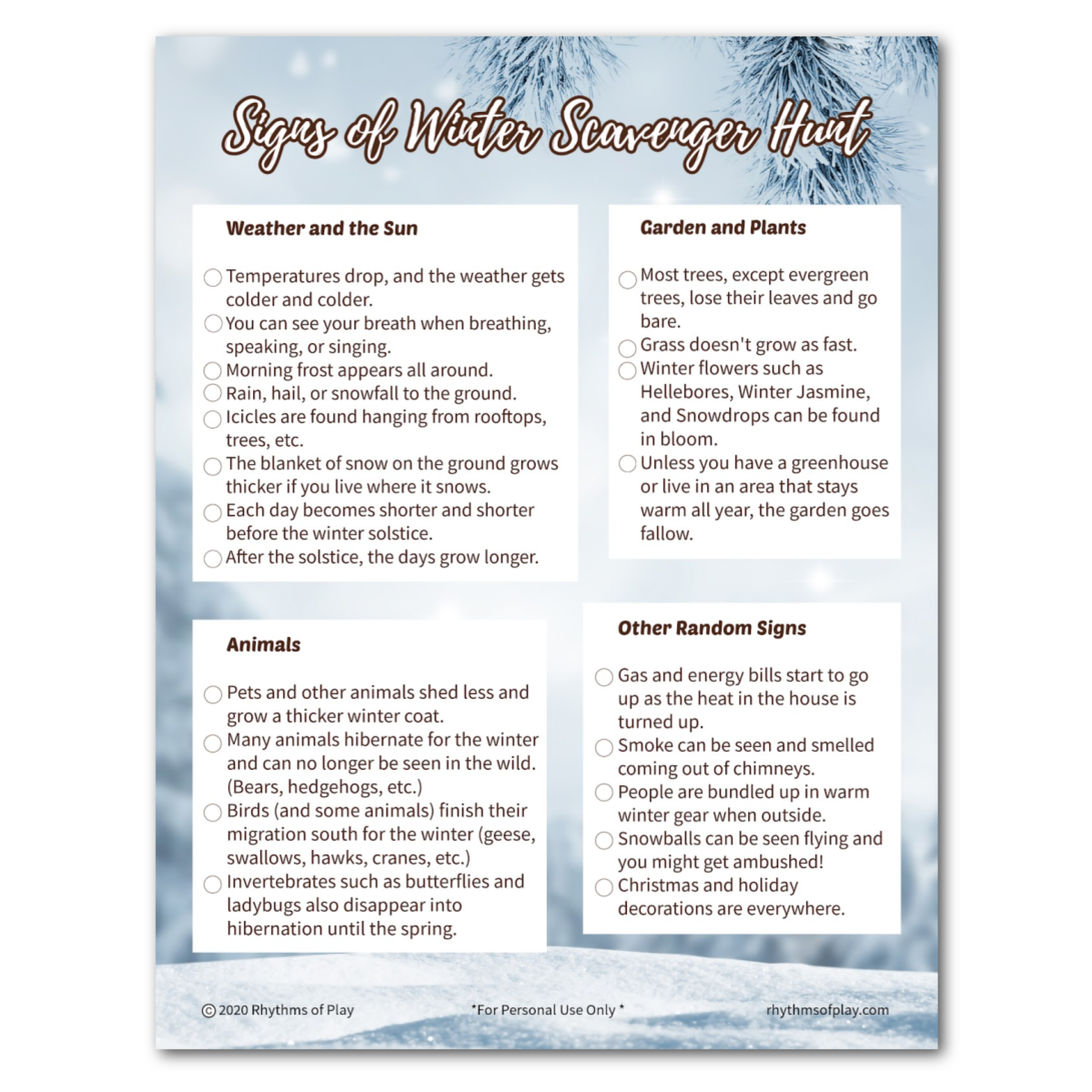 After you download and print the "Signs of Winter Scavenger Hunt," click the link to learn all about this fun outdoor winter activity for kids!