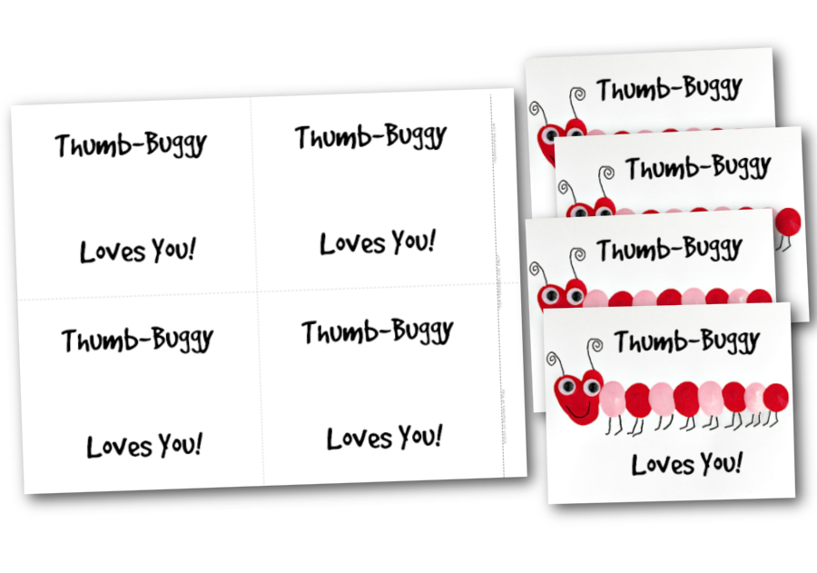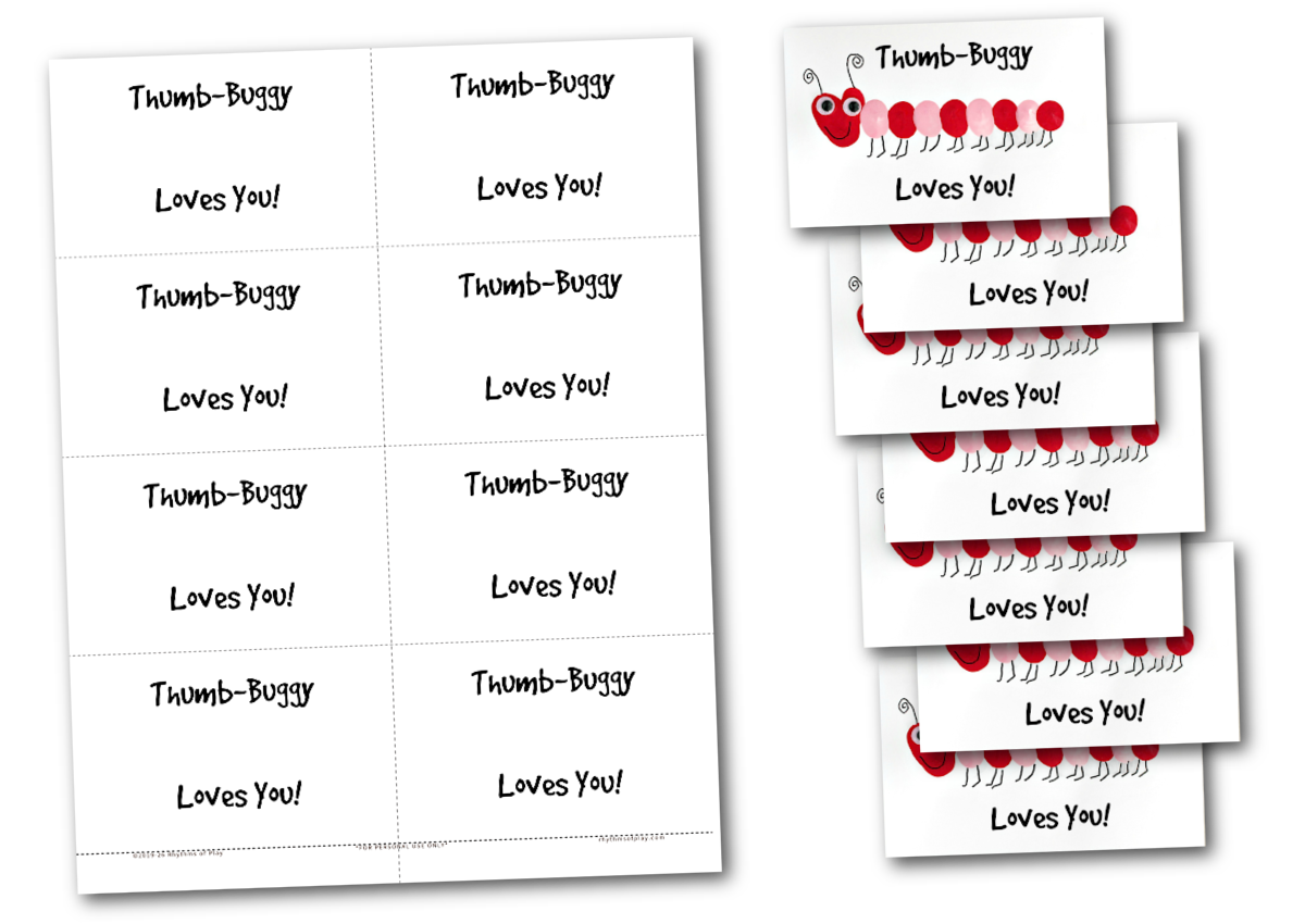 This bundle of "Thumb Buggy Love You" printable craft templates makes it easy to make the perfect-sized cards for your needs.